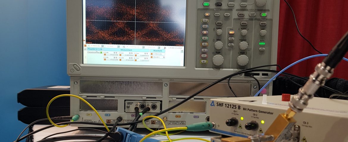 EPIC Interview: Photos of live demo:a) 910nm VM100 Module w/o electronics:50G eye without pre-emphasis or equalizationb) 850nm T56 Tx- R56 Rx link live demonstration…